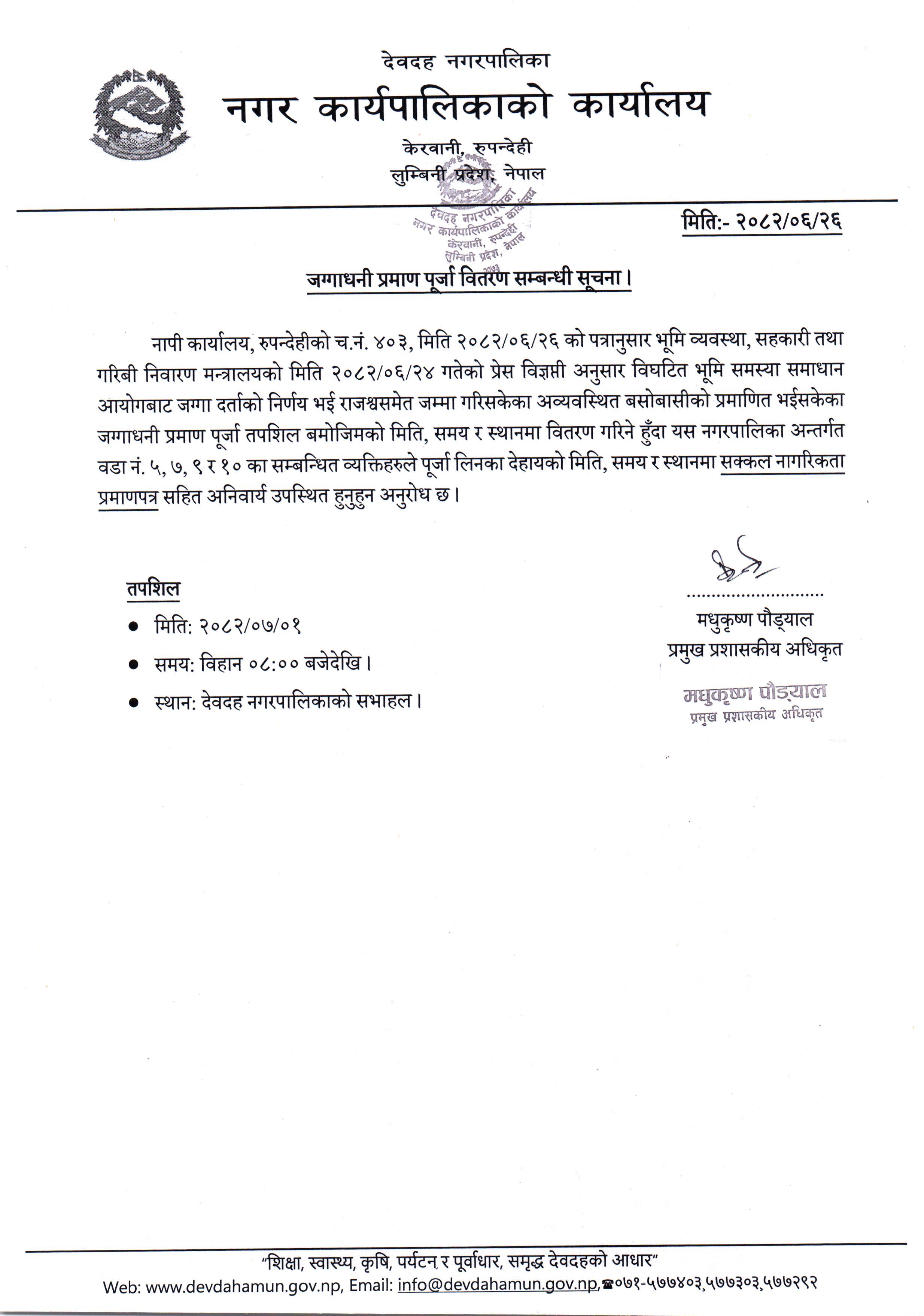 अव्यवस्थित बसोबासीको प्रमाणित भईसकेका जग्गाधनी प्रमाण पूर्जा वितरण सम्बन्धी सूचना ।