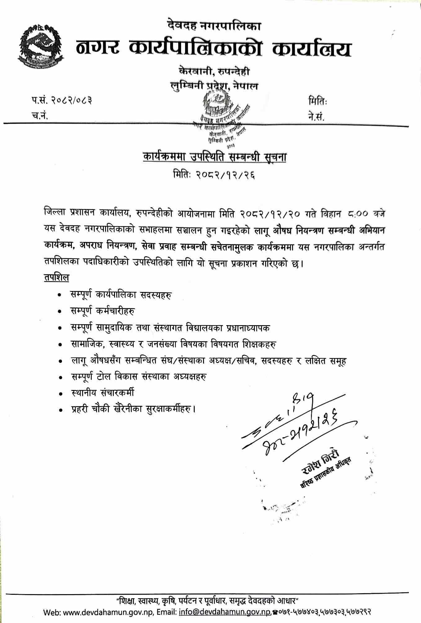 - लुम्बिनी प्रदेश सरकार वन,वातावरण,पर्यटन तथा खानेपानी मन्त्रालय राप्ती उपत्यका (देउखुरी) नेपाल
