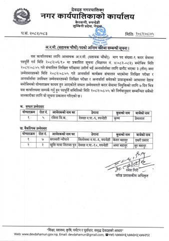 अ.न.मी. (सहायक चौथौं) पदको अन्तिम नतिजा सम्बन्धी सूचना ।