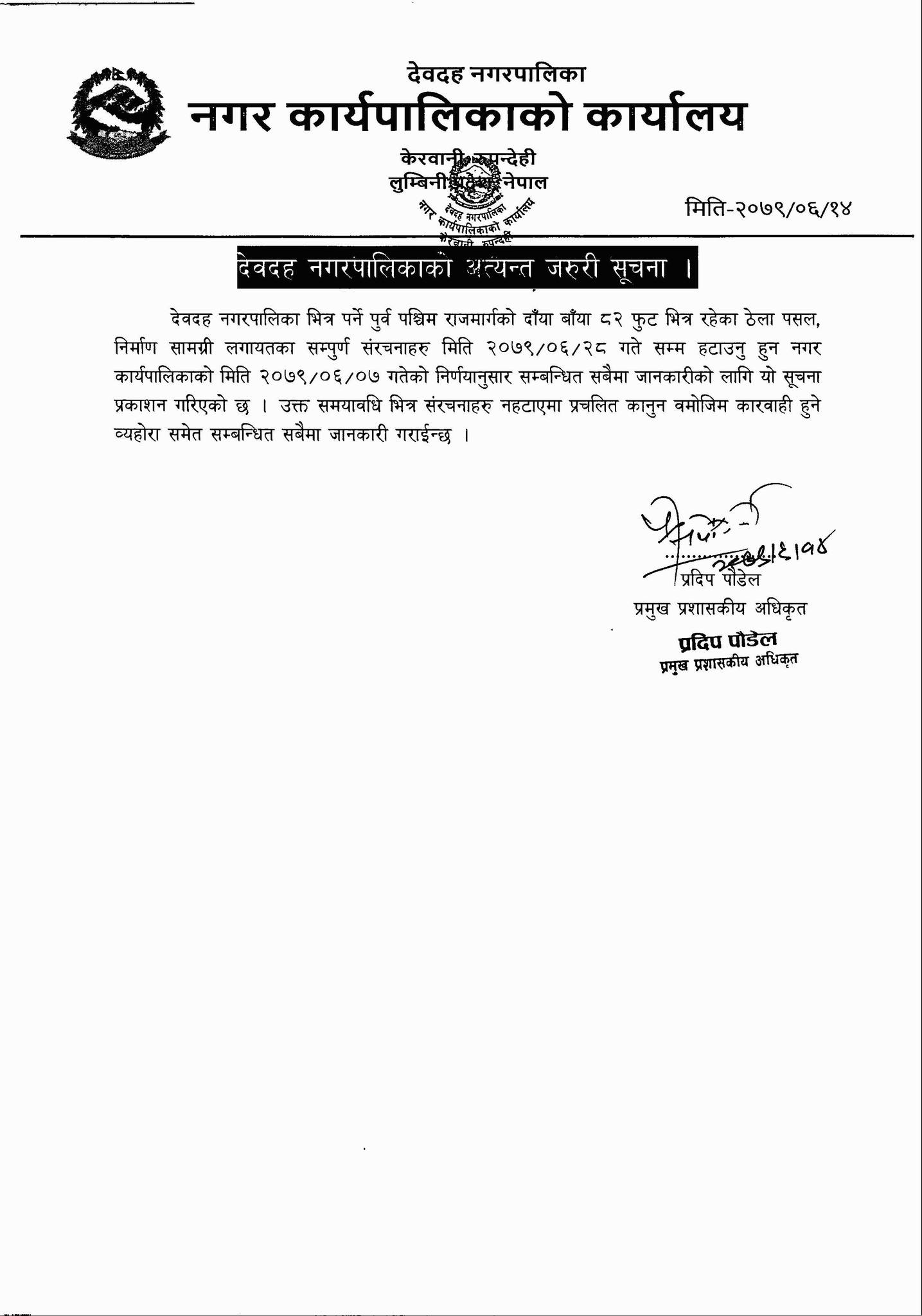 देवदह नगरपालिकाको अत्यन्त जरुरी सूचना ।
