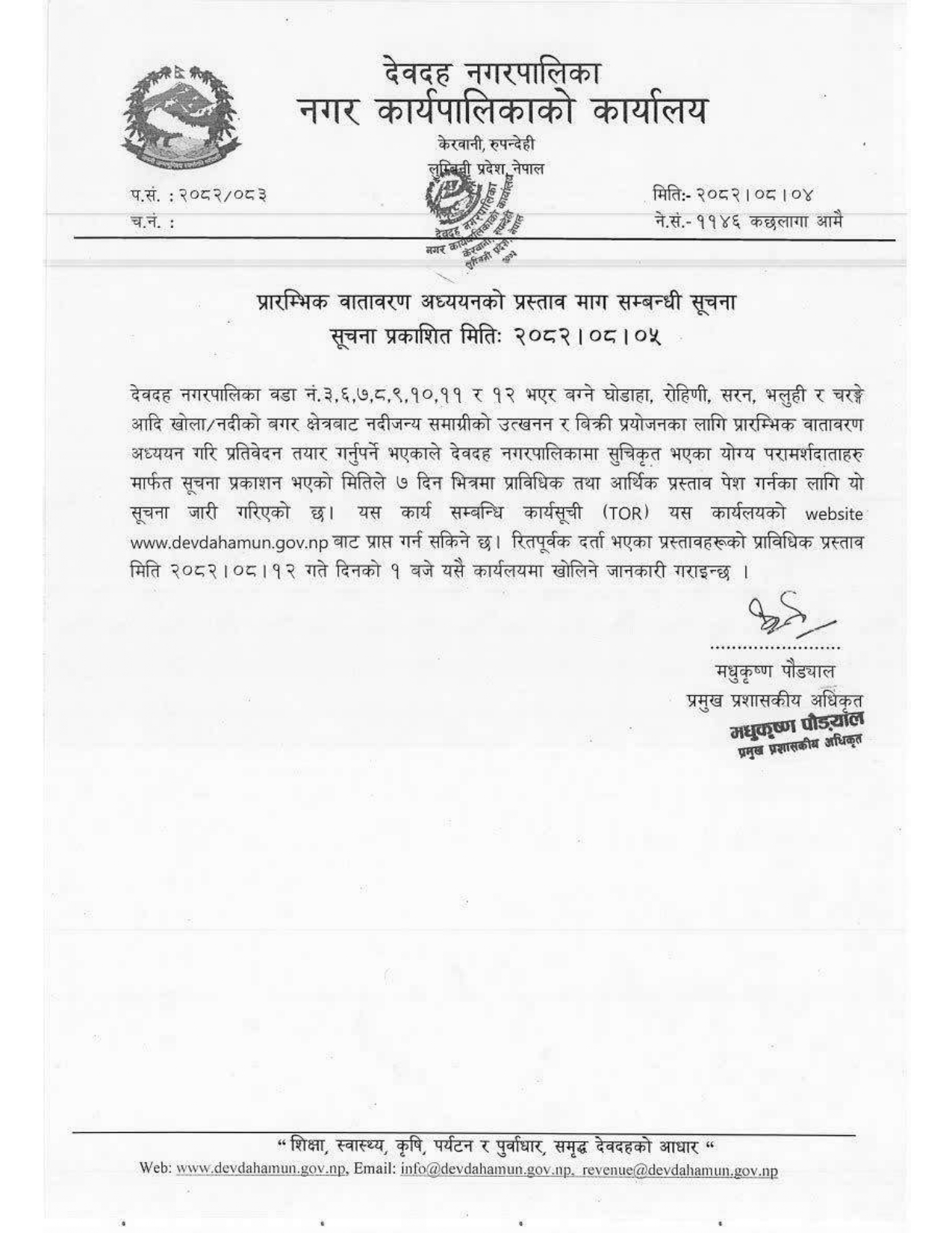 प्रारम्भिक वातावरण अध्ययनको प्रस्ताव माग सम्बन्धी सूचना ।