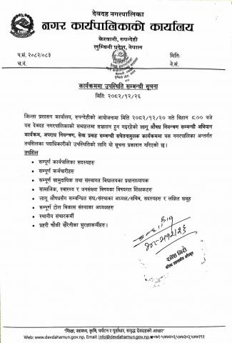 - लुम्बिनी प्रदेश सरकार वन,वातावरण,पर्यटन तथा खानेपानी मन्त्रालय राप्ती उपत्यका (देउखुरी) नेपाल